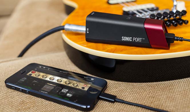 Sonic Port is a sleek, highly compact digital audio interface that connects to an iPod touch, iPhone or iPad 30-pin or Lightning connector, enabling guitar players to jam and record using CoreAudio music apps such as GarageBand, and gain access to the acclaimed Line 6 Mobile POD app. Unlike other devices that connect to the analog headphone jack of an iOS device, Sonic Port features an all-digital signal path resulting in best-in-class sound quality. With 110dB of guitar dynamic range and up to 24-bit/48kHz audio quality throughout, Sonic Port allows musicians to get the most from CoreAudio music apps.