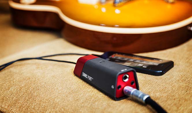 For forward-thinking musicians who want to use an iPod touch, iPhone or iPad as the centerpiece of a mobile studio or as a performance tool, Sonic Port provides a variety of inputs and outputs for connecting instruments and outboard gear. A 1/4″ input makes it easy to connect guitars and basses, while keyboards, mixers, CD players and other iOS devices can be connected via the 1/8” stereo input. For monitoring, users can simply plug in their headphones or powered studio monitors and enjoy unparalleled audio fidelity. Musicians can also connect to a guitar amplifier via the 1/4” guitar/line-level output.
