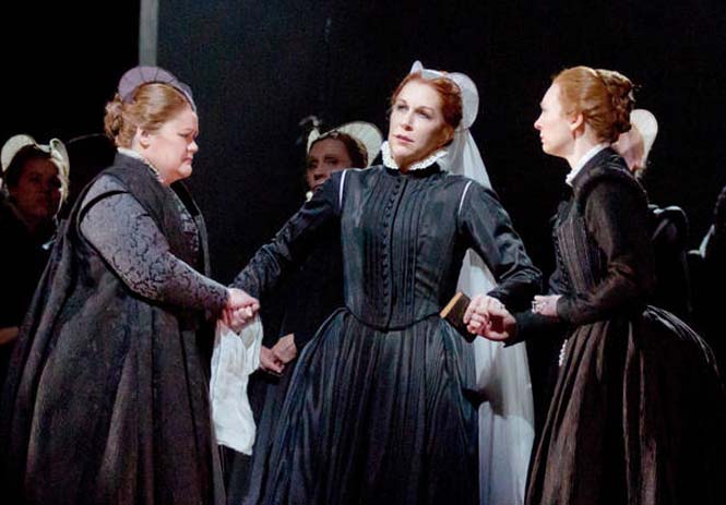 Directed by David McVicar, the Met’s premiere production takes a traditional approach, using vivid colors and stark imagery to lend a contemporary touch to the period sets and costumes by John Macfarlane.