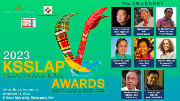 The eight awardees are Jose R. Gullas (Cebu/music & cultural work/posthumous), Marianito Luspo Bohol/cultural work), Ramon B. Ramirez (Iloilo/cultural research), Rodolfo Reveche (Murcia, Negros...